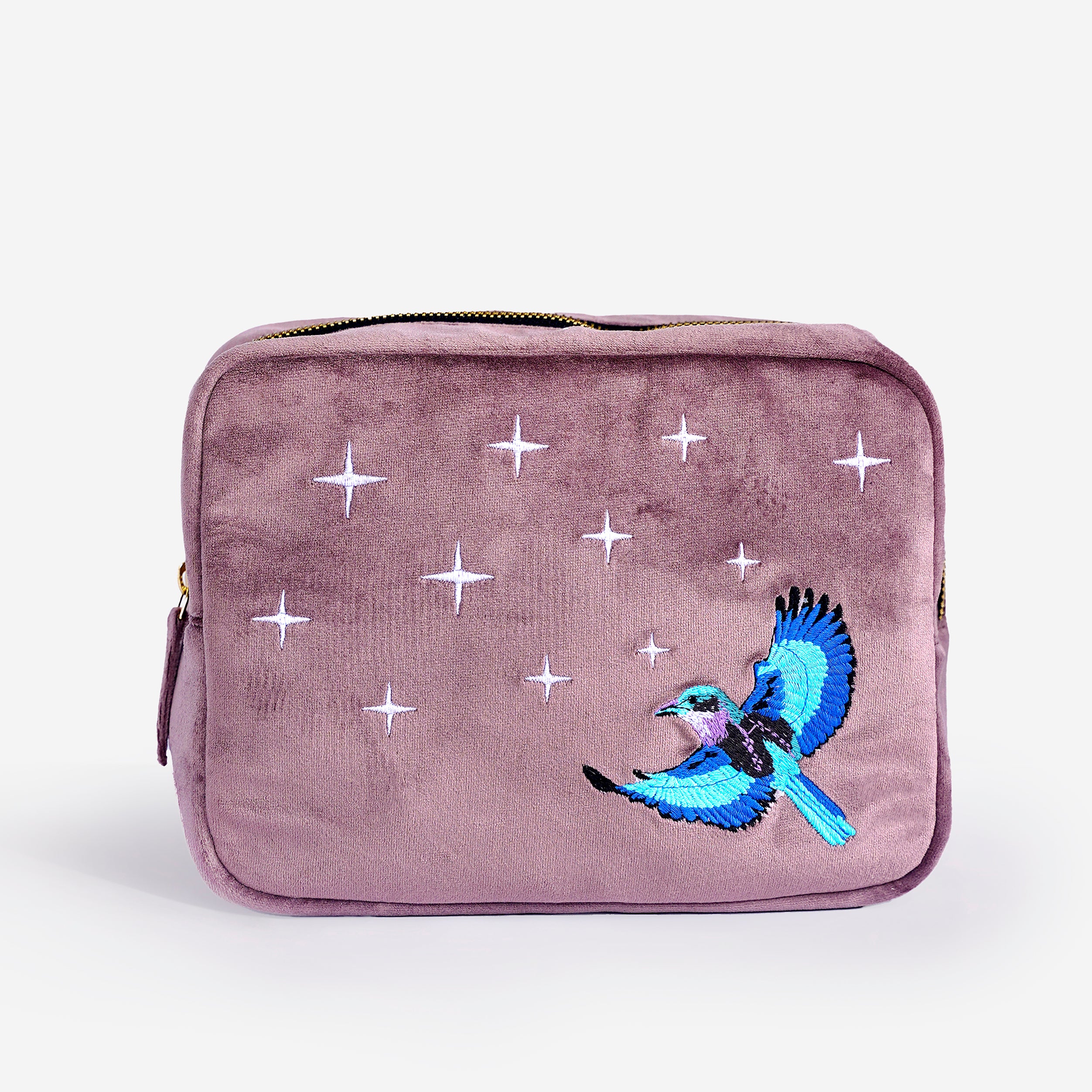 Elegant and functional, this velvet jewellery organiser in our signature Blush Mocha hue features a delicate Indian Roller in flight, intricately embroidered in thread.