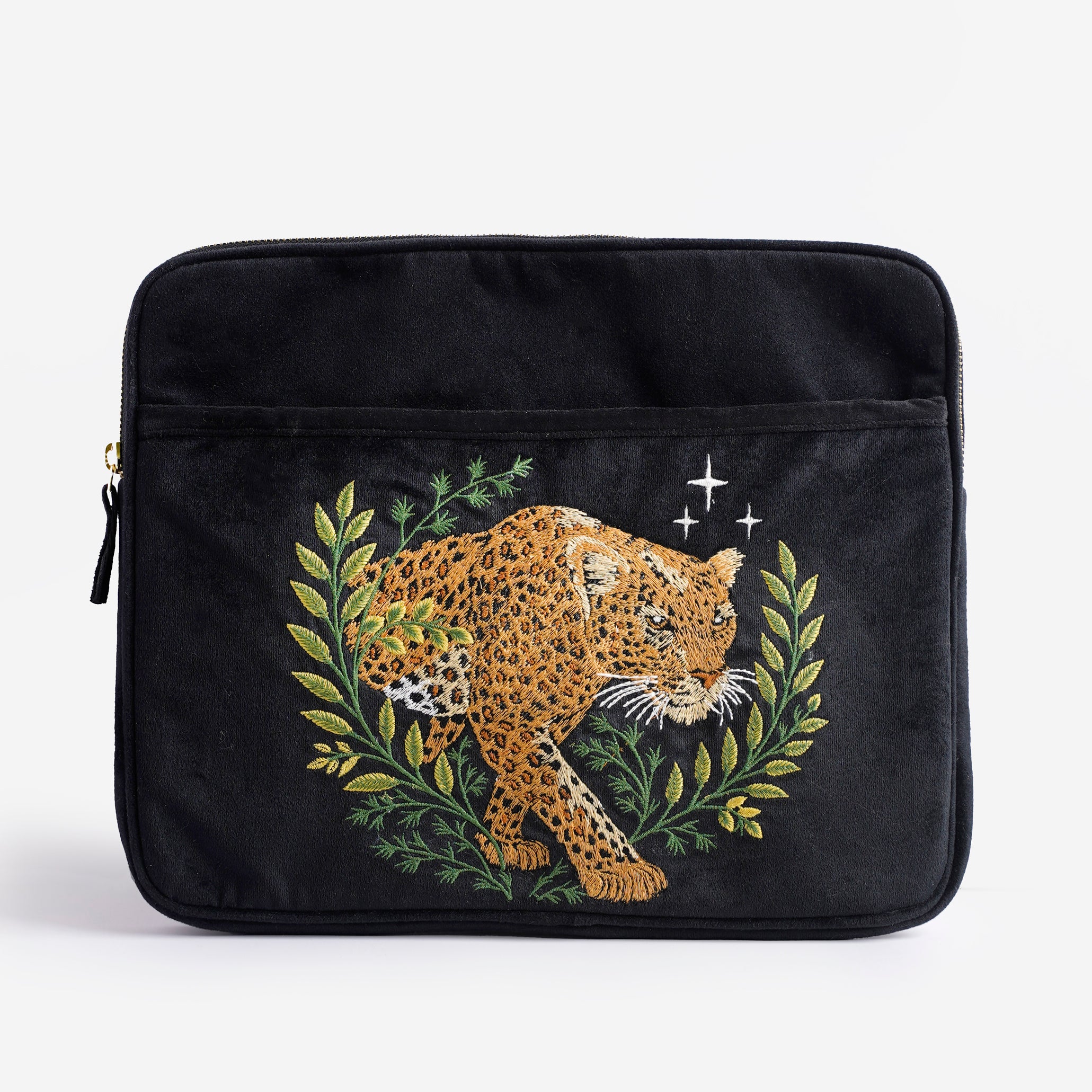 Crafted from soft velvet and embroidered with majestic wildlife, this laptop sleeve offers padded protection with undeniable charm. Designed for daily use, it slips easily into your tote or backpack—making it a functional yet statement-worthy essential for work and travel.