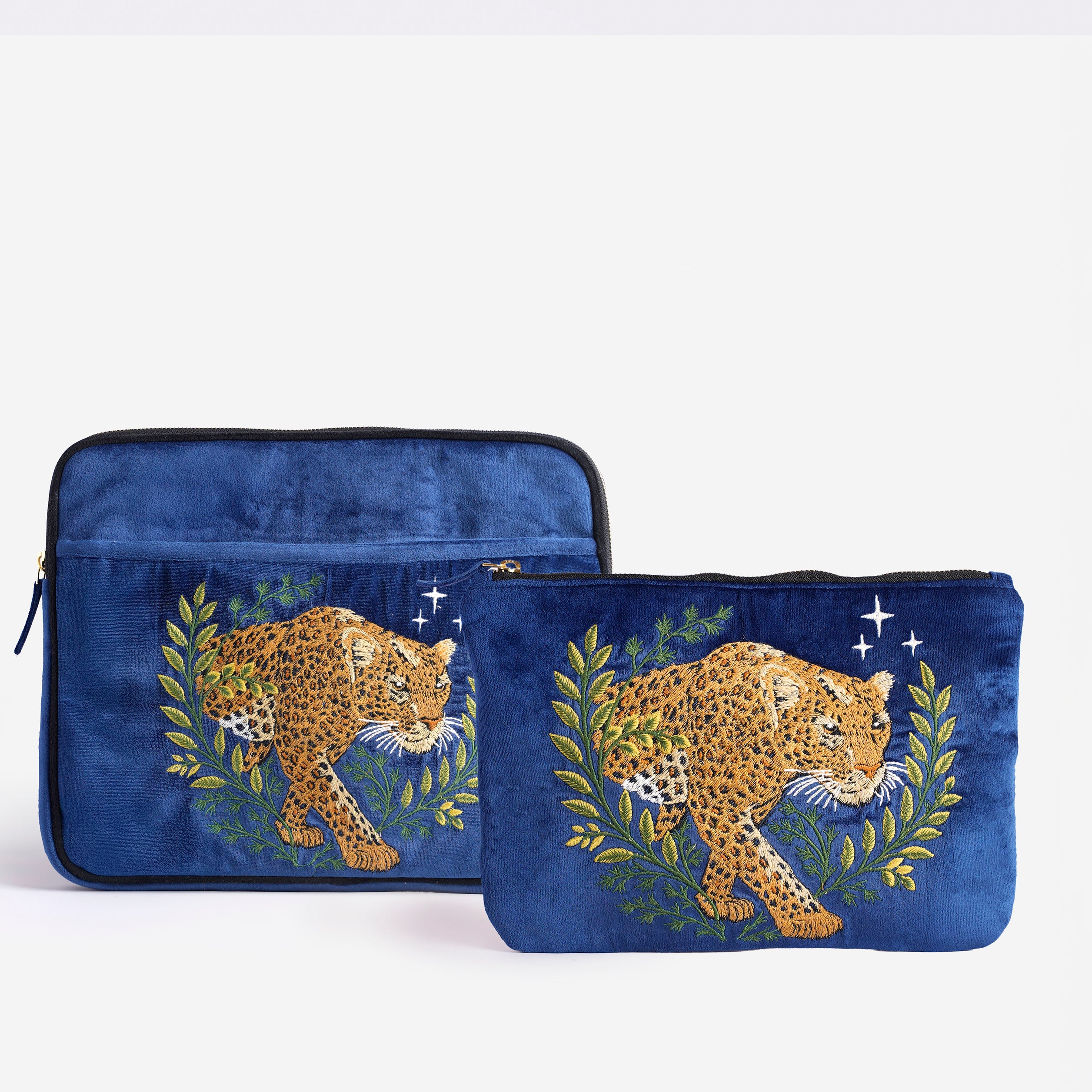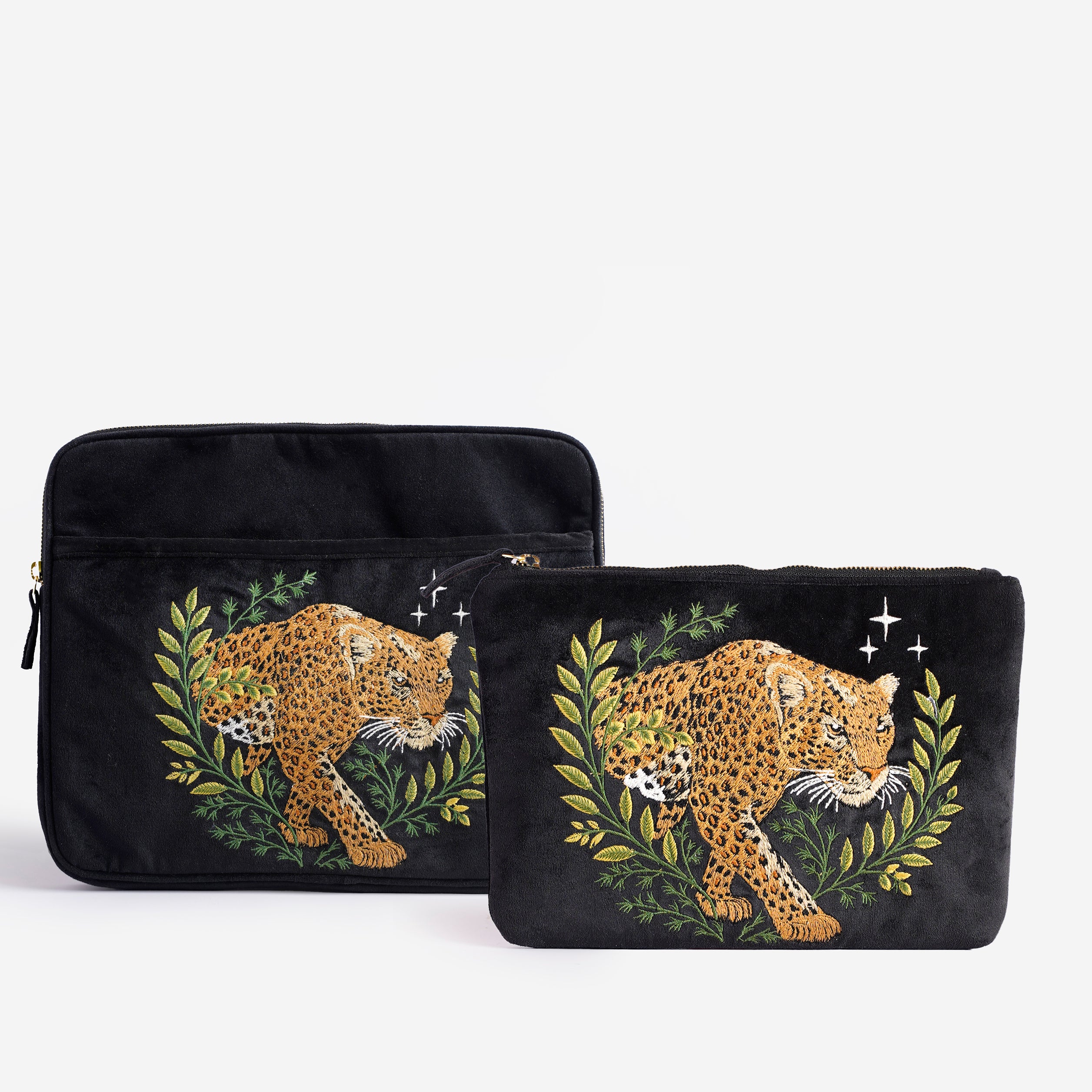 Made from soft velvet and detailed with exquisite wildlife embroidery, this set combines everyday functionality with bold, purposeful design. The laptop sleeve offers secure protection for your device, while the everyday pouch keeps your essentials neatly in place—perfect for work, travel, or life on the go.
